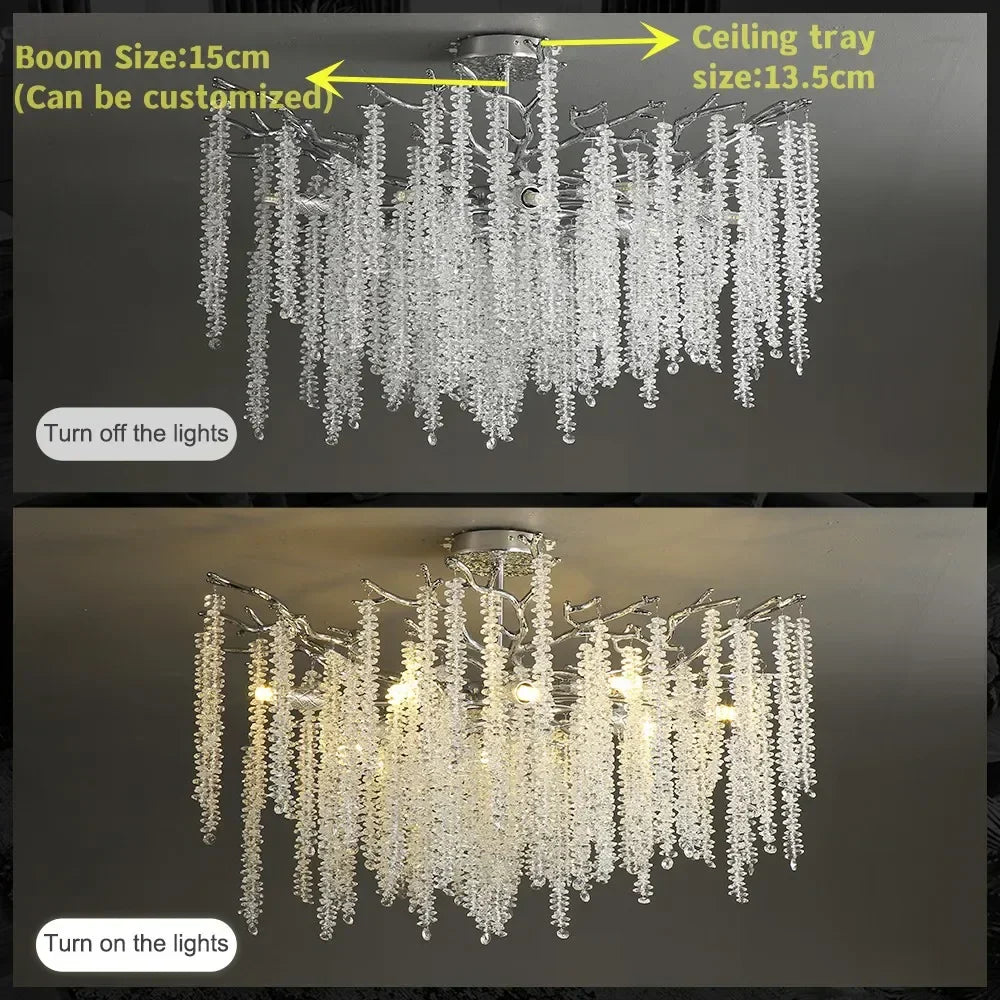 Introducing our elegant Ljojo Crystal Ceiling Chandelier Light with a stunning tree branch design. Elevate your living space with this exquisite piece that exudes modern style and sophistication.
