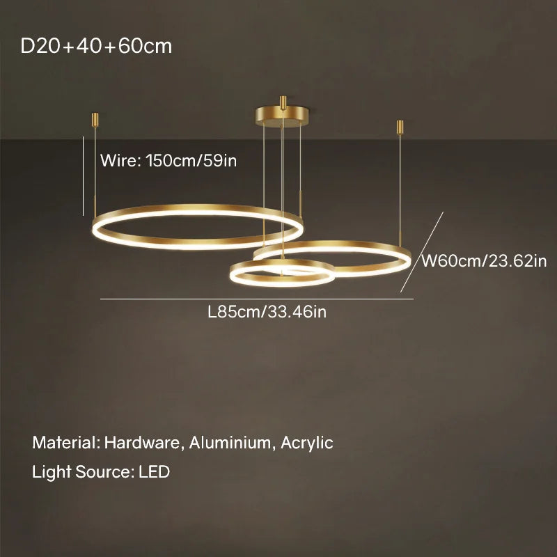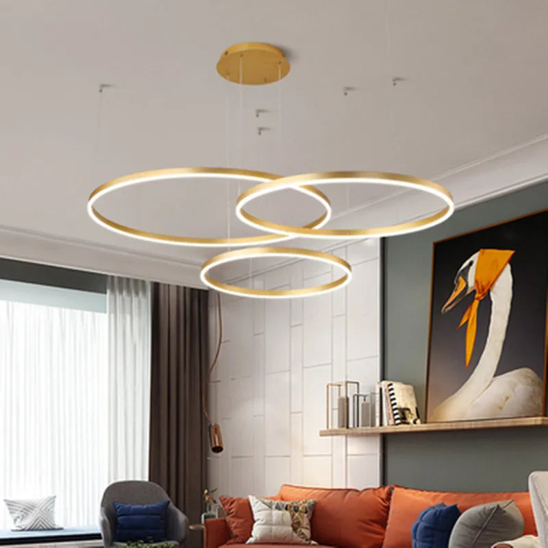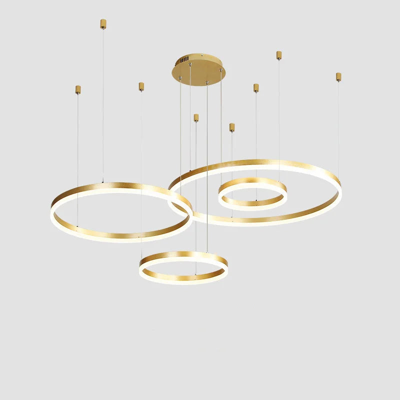Elevate your home or restaurant ambiance with the Ljojo Gold Ring Chandelier. This modern LED pendant light combines style and functionality to create a stunning focal point in any room. Crafted with high-quality materials, this chandelier exudes elegance and sophistication.