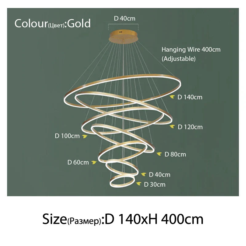 Illuminate your home in style with the Ljojo High Ceiling Chandelier Staircase LED Circles Indoor Luxury House Lighting. Elevate your space and make a statement with this exquisite lighting fixture that exudes modern elegance and sophistication.