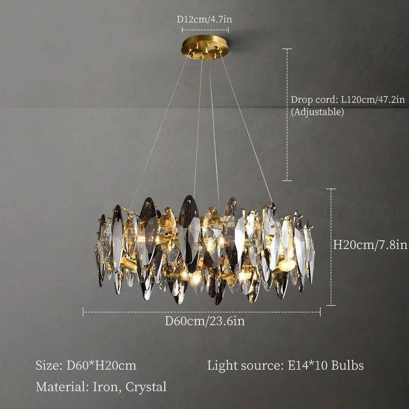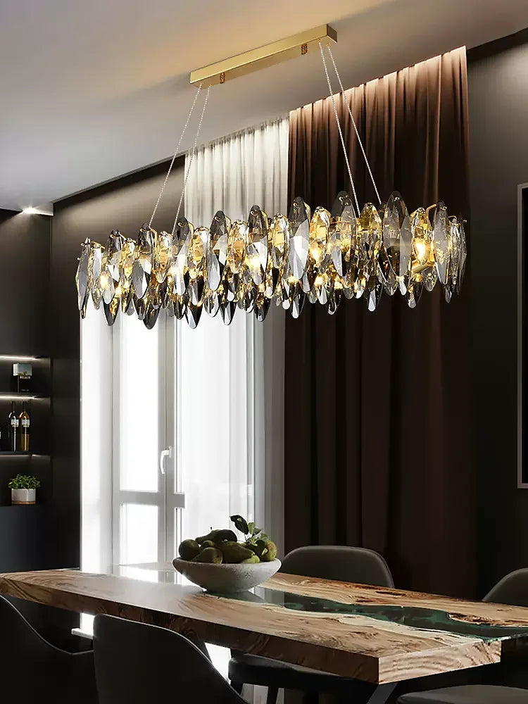 Elevate your living space with the Ljojo Modern Crystal Chandelier, a stunning addition to any dining or living room decor. This exquisite hanging ceiling lamp exudes elegance and sophistication, creating a captivating focal point in your home.