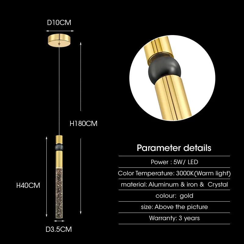 Crafted with attention to detail, this pendant light features a stunning crystal design that exudes elegance. The gold and black finishes add a chic and stylish element to the overall aesthetic, making it a perfect addition to your study, master bedroom, or other bedrooms.