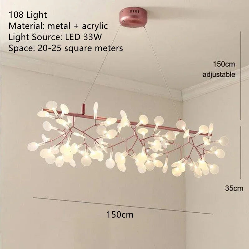 Enhance your space with the Ljojo Firefly Chandelier and bask in the luxurious glow it provides. Illuminate your surroundings with style and sophistication, while adding a touch of modern elegance to your decor. Elevate your dining experience and create a memorable ambiance with the Ljojo Nordic Firefly LED Chandelier in Rose Gold/Black.
