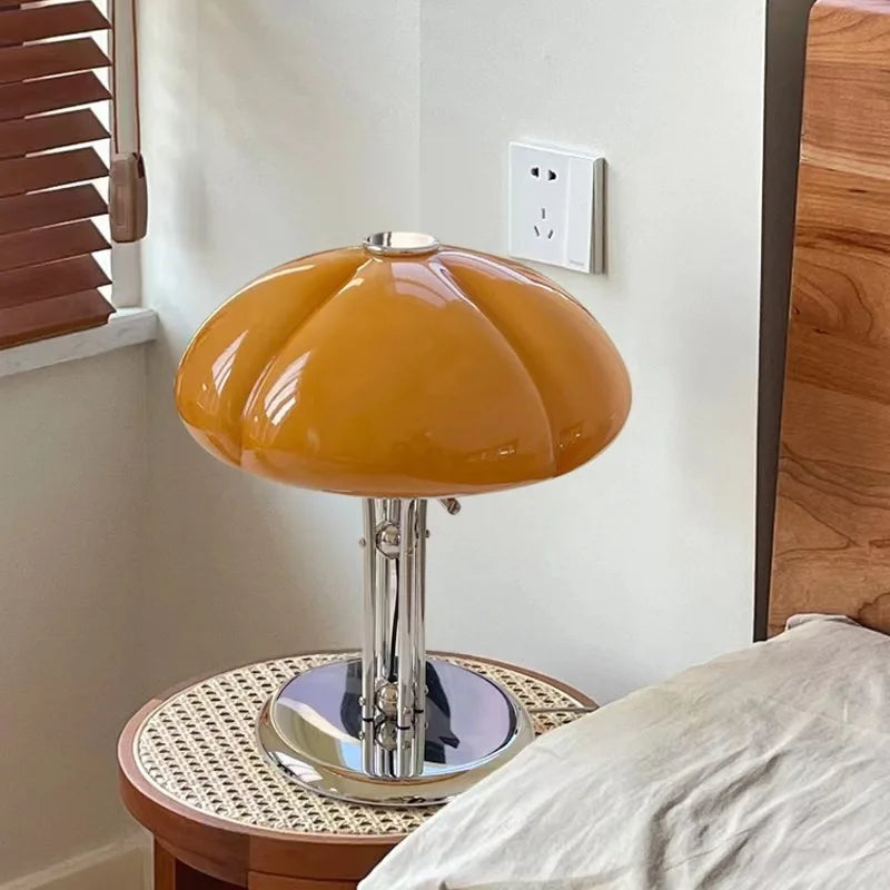 Crafted with high-quality materials, the Ljojo Nordic Modern Pumpkin Table Lamp is a true statement piece. The shade is adorned with beautiful stained glass, creating a warm and inviting glow when illuminated. The lamp features a sleek glass and iron body, combining durability with a sleek aesthetic.