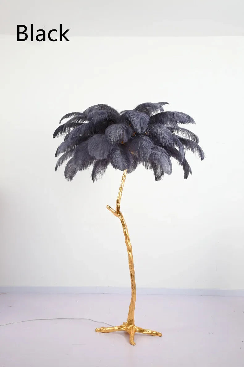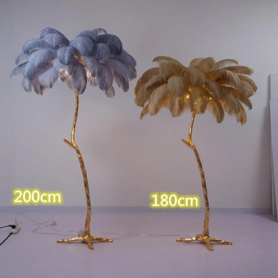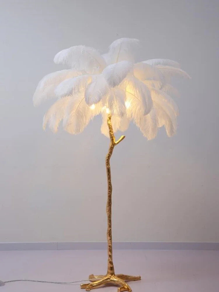 Illuminate your home in style with the Ljojo Ostrich Feather Nordic Floor Lamp in Gold Resin LED Light, a true statement piece that will elevate your interior décor to new heights.