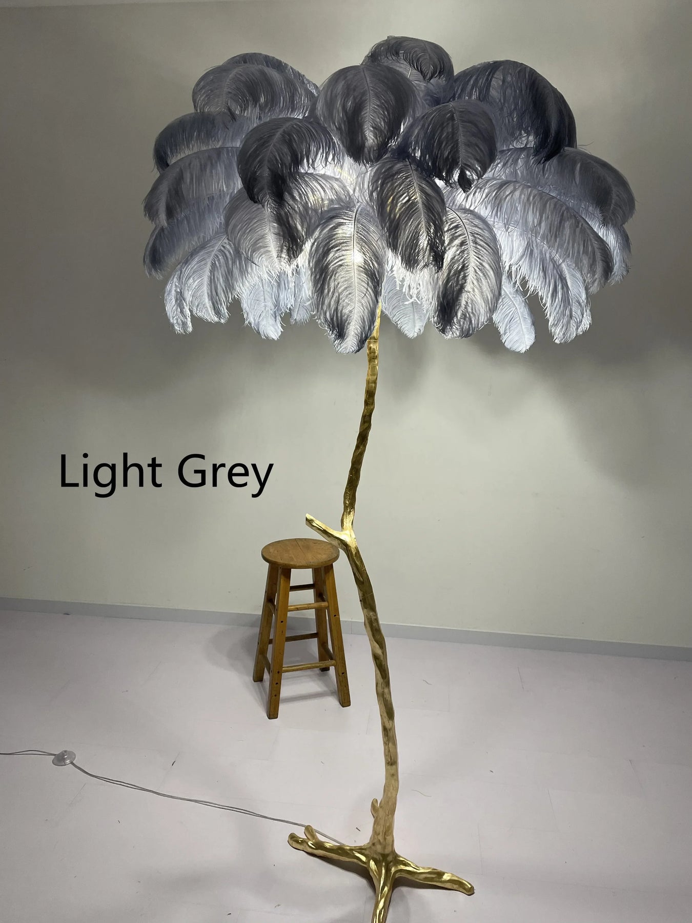 Introducing our Ljojo Ostrich Feather Nordic Floor Lamp in Gold Resin LED Light, a stunning addition to any modern living space. This exquisite piece features delicate feathers that add a touch of elegance and sophistication to your home décor.