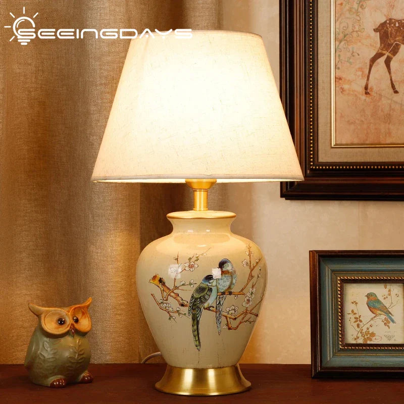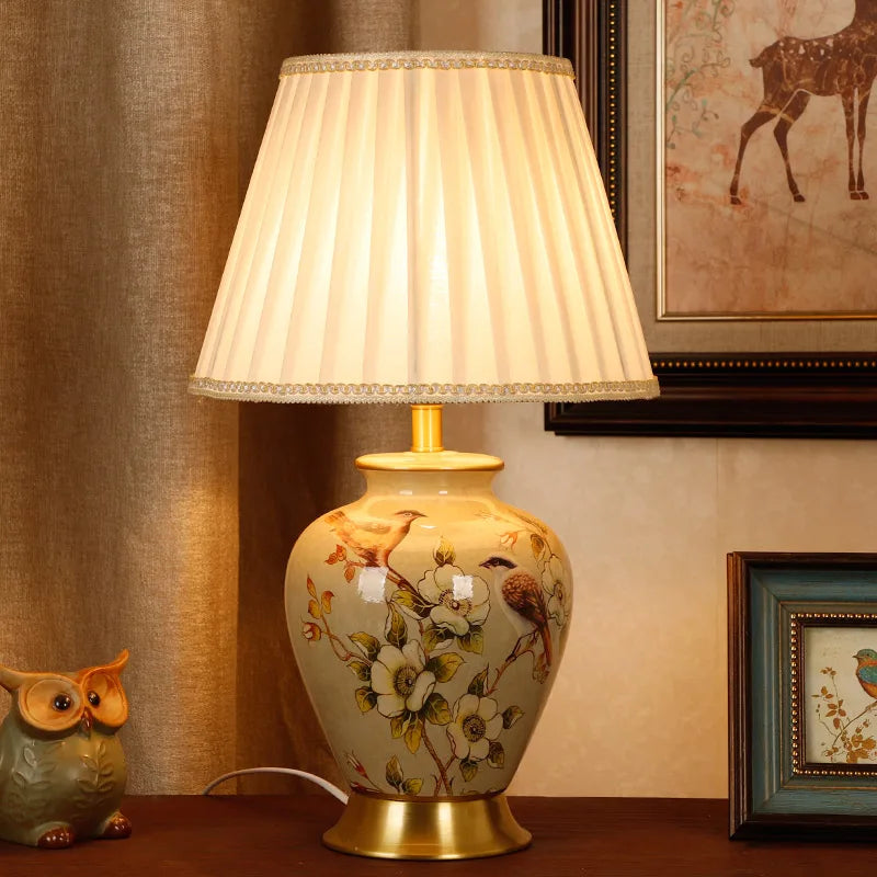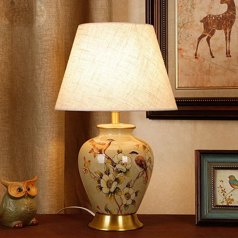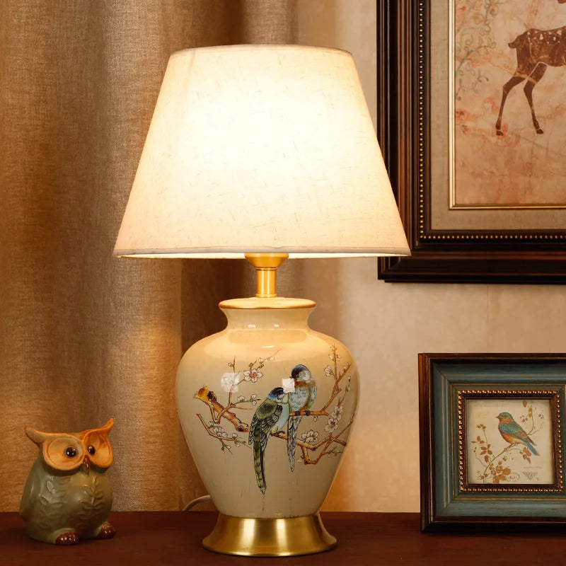 Introducing the Ljojo Retro Bird & Flower Ceramic Table Lamp, a stunning addition to your home decor. This beautifully crafted lamp exudes a sense of traditional elegance with its exquisite design and intricate details.
