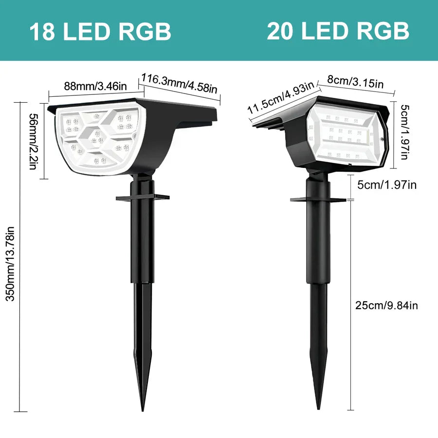 Illuminate your outdoor area with the Ljojo RGB Solar Landscape Spotlights featuring 18/20 LED RGB lights, offering a colorful and vibrant lighting experience. These spotlights are not just your ordinary lights; they are a perfect blend of style and functionality, adding a touch of contemporary flair to your space.