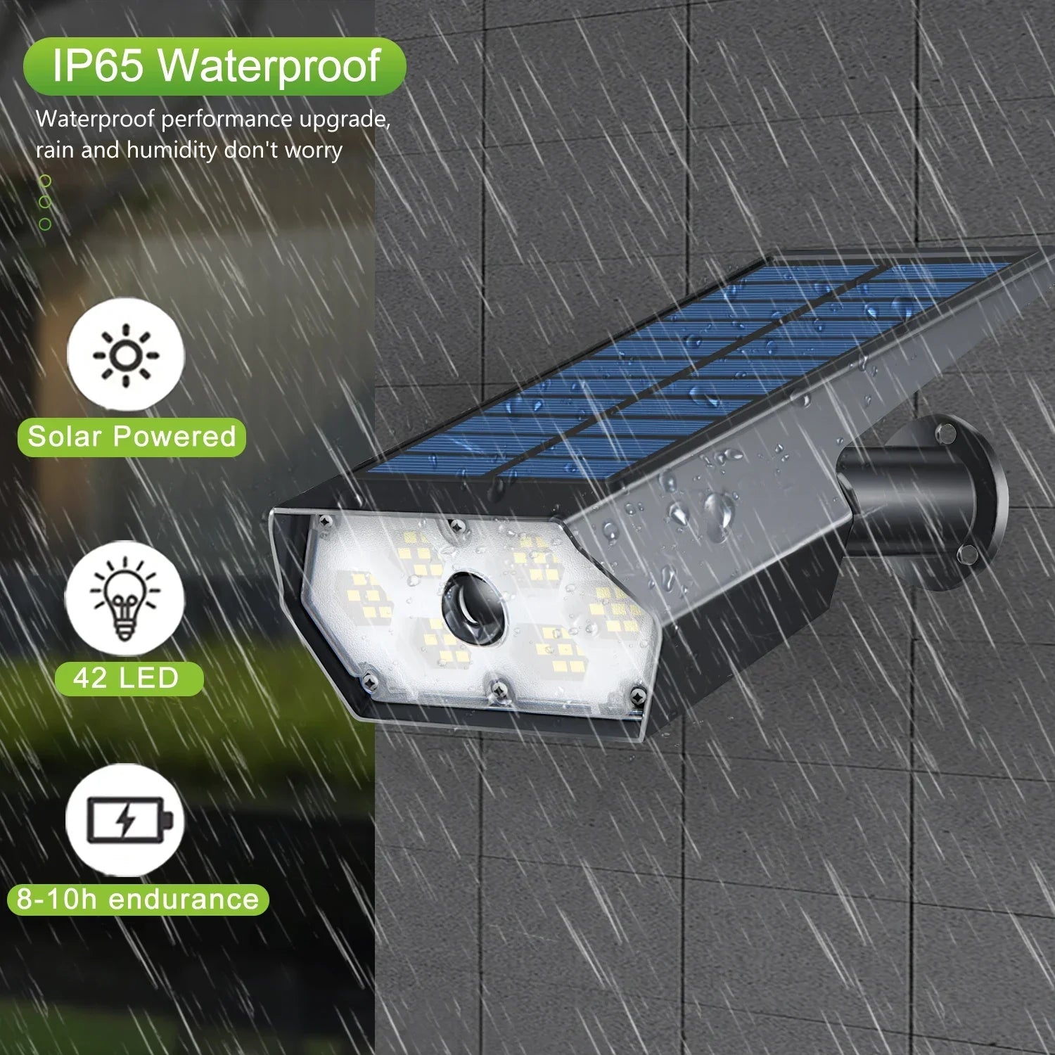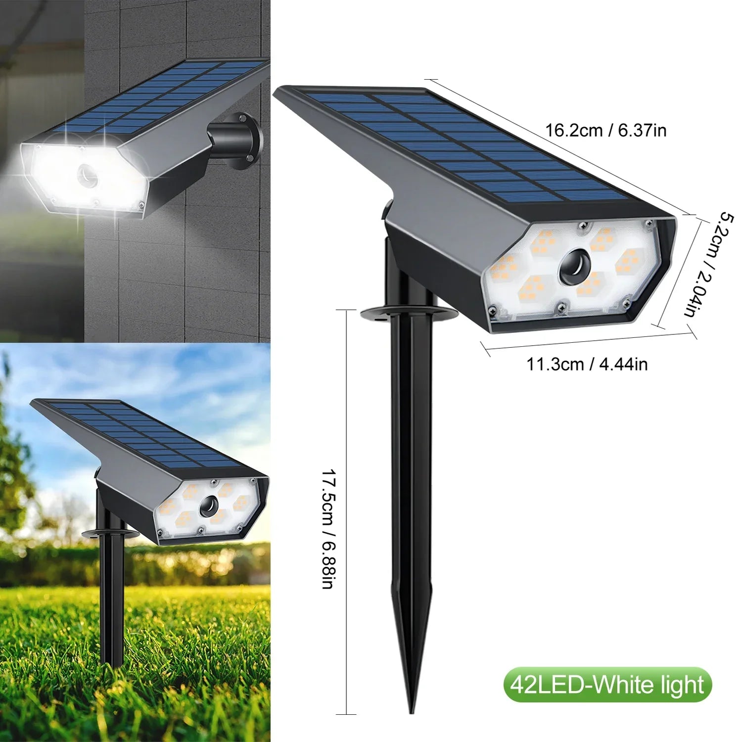 With a power source of solar energy, these lights are environmentally friendly and cost-effective. The ABS body material ensures durability and long-lasting performance. The 42 LED model provides bright and efficient lighting, powered by a 3.7V lithium battery.