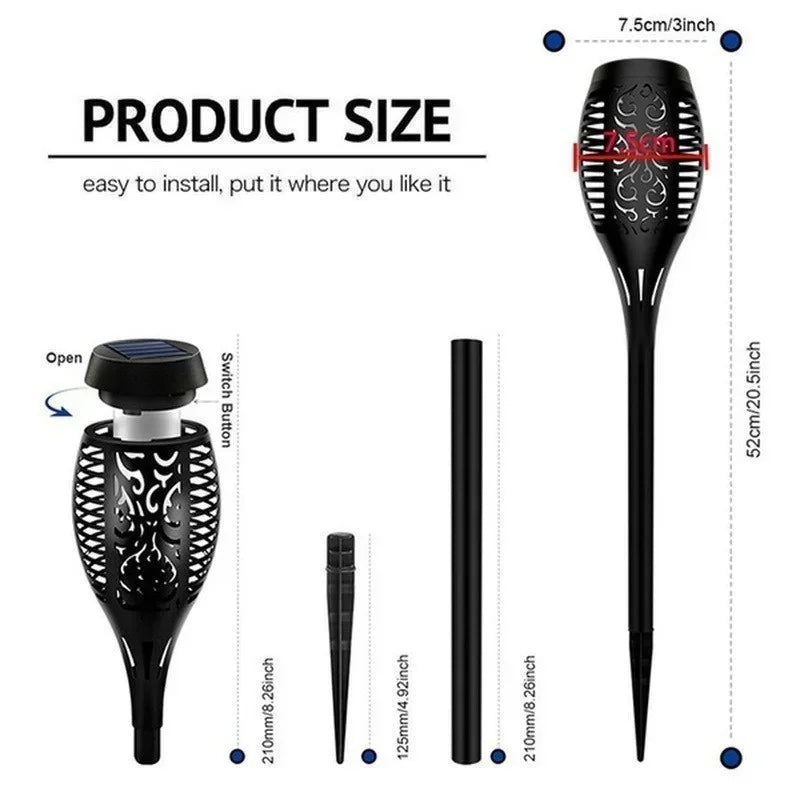 Create a mesmerizing ambiance in your outdoor space with these Solar Flame Torch Lights by Ljojo. Perfect for adding a touch of elegance to your garden, these waterproof flickering lights are designed to elevate your outdoor decor.